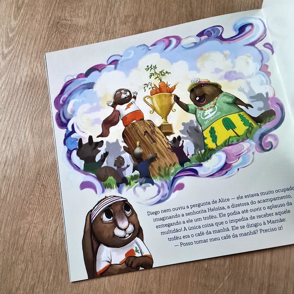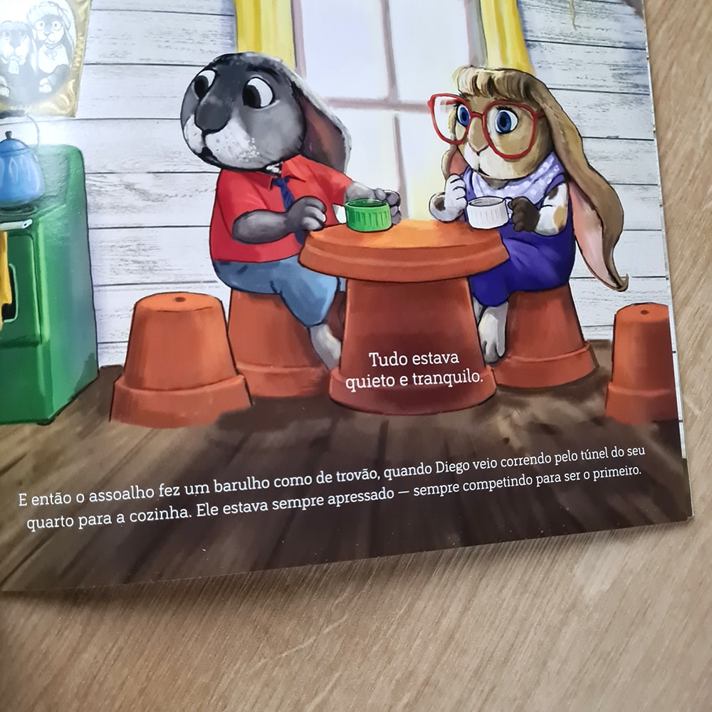 Diego estava certo de ser o coelhinho mais veloz da campina. Mas, durante uma corrida no acampamento de verão, nada ocorre conforme ele havia planejado, e Diego é exposto. Depois de seu tombo épico, sua irmã mais velha, Alice, ajuda-o a ver que o fracasso é uma grande chance de crescimento. Quando Diego recorda o amor de Deus, ele consegue se desvencilhar das opiniões dos outros e aceitar que está tudo bem quando se tenta fazer o seu melhor, mesmo não sendo o melhor entre todos. Organizado por Edward T. Welch, Diego tropeça nas orelhas termina com uma seção especial que orienta os pais a ensinarem seus filhos sobre como o evangelho de Jesus Cristo nos conforta e sustenta durante os fracassos, tirando nosso foco de nós mesmos e voltando-o para o outro.