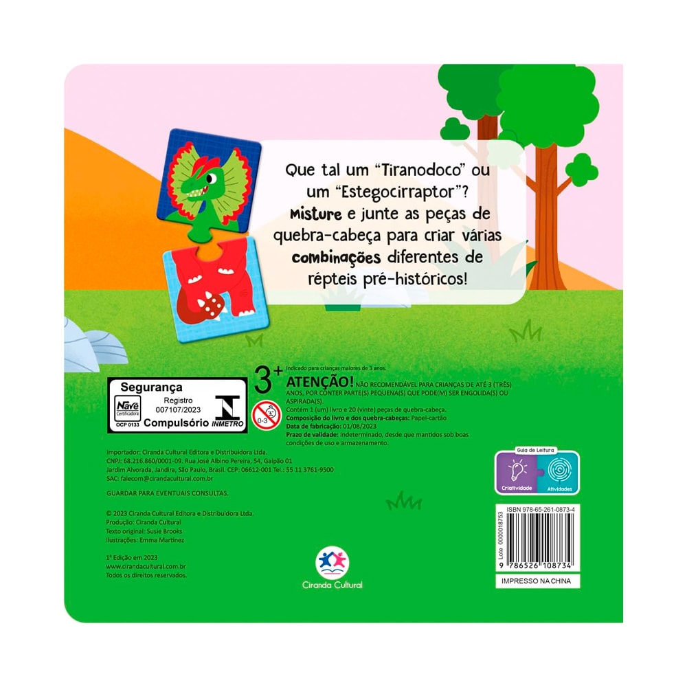 "Que tal criar um Tiranodoco ou um Estegocirraptor? Com este incrível quebra-cabeça, você pode misturar e combinar as peças para montar dinossauros únicos e cheios de imaginação! Divirta-se explorando diversas combinações de répteis pré-históricos e descubra qual será a sua criação mais maluca. Perfeito para crianças que adoram dinossauros e aventuras, este jogo estimula a criatividade e garante horas de diversão!"