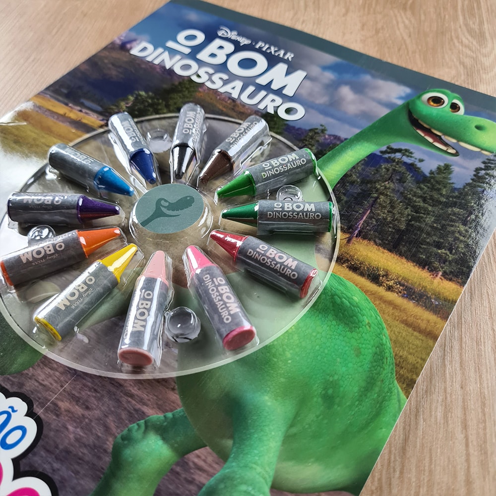 Descubra seu talento artístico com os divertidos personagens do filme O Bom Dinossauro. Use os gizes de cera que acompanham o livro e dê asas à sua imaginação.