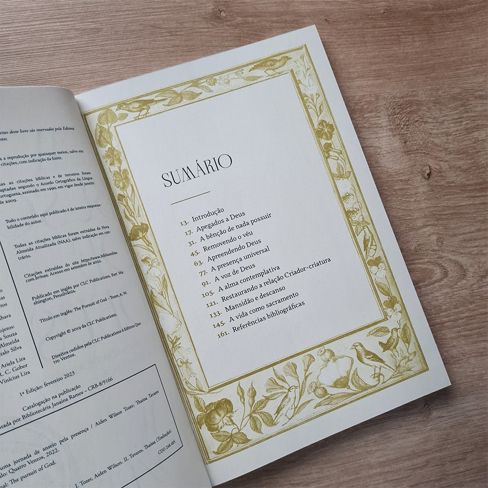 "Este livro é uma tentativa modesta", disse Tozer," de ajudar os filhos de Deus a encontrá-lo". Então, se você está em busca de Deus, estas páginas visam conduzi-lo ao Único que pode satisfazer sua alma por inteiro.
