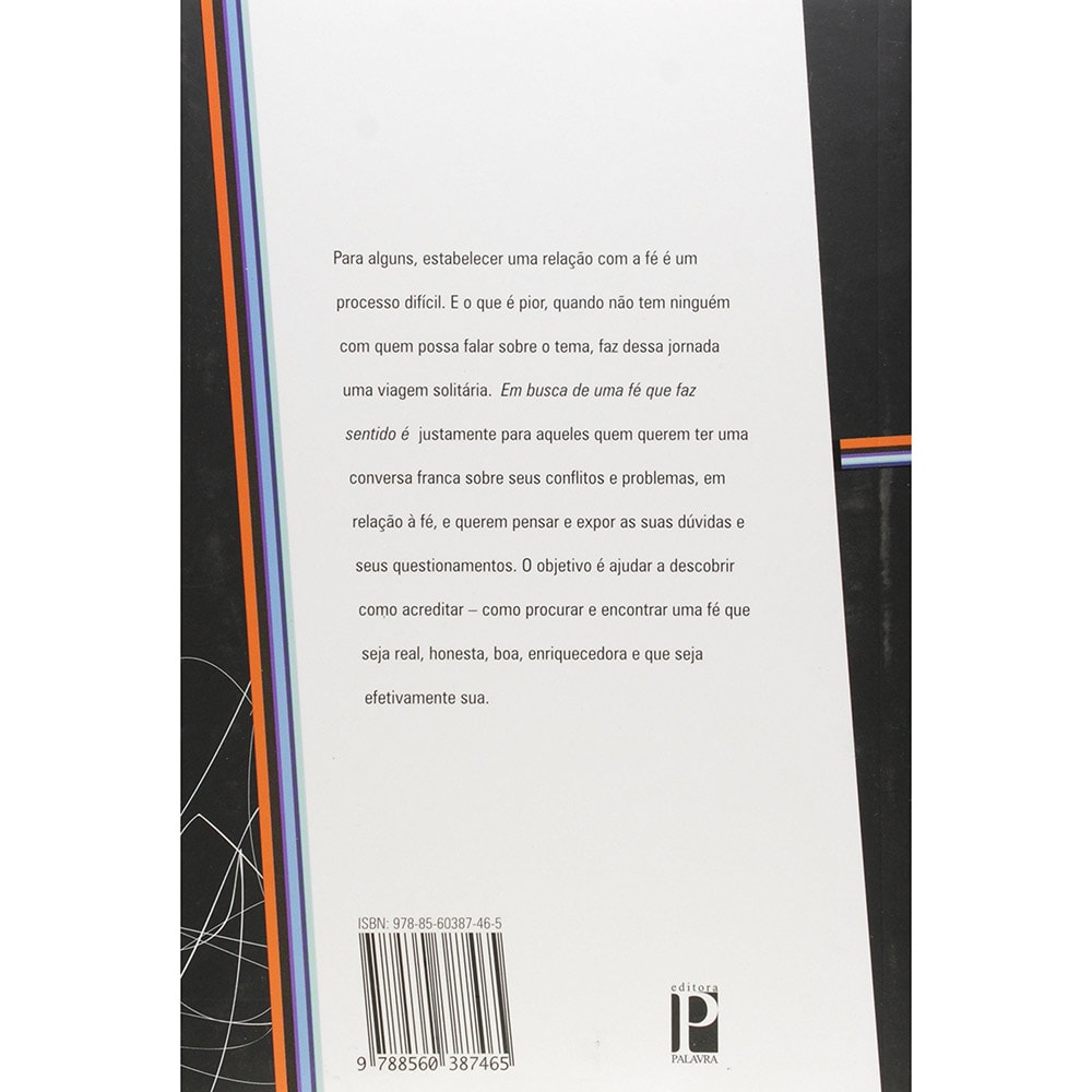 E o que é pior, quando não tem ninguém com quem possa falar sobre o tema, faz dessa jornada uma viagem solitária. "Em Busca de uma fé que faz Sentido" é justamente para aqueles que querem ter uma conversa franca sobre seus conflitos e problemas, em relação à fé, e querem pensar e expor as suas dúvidas e seus questionamentos.