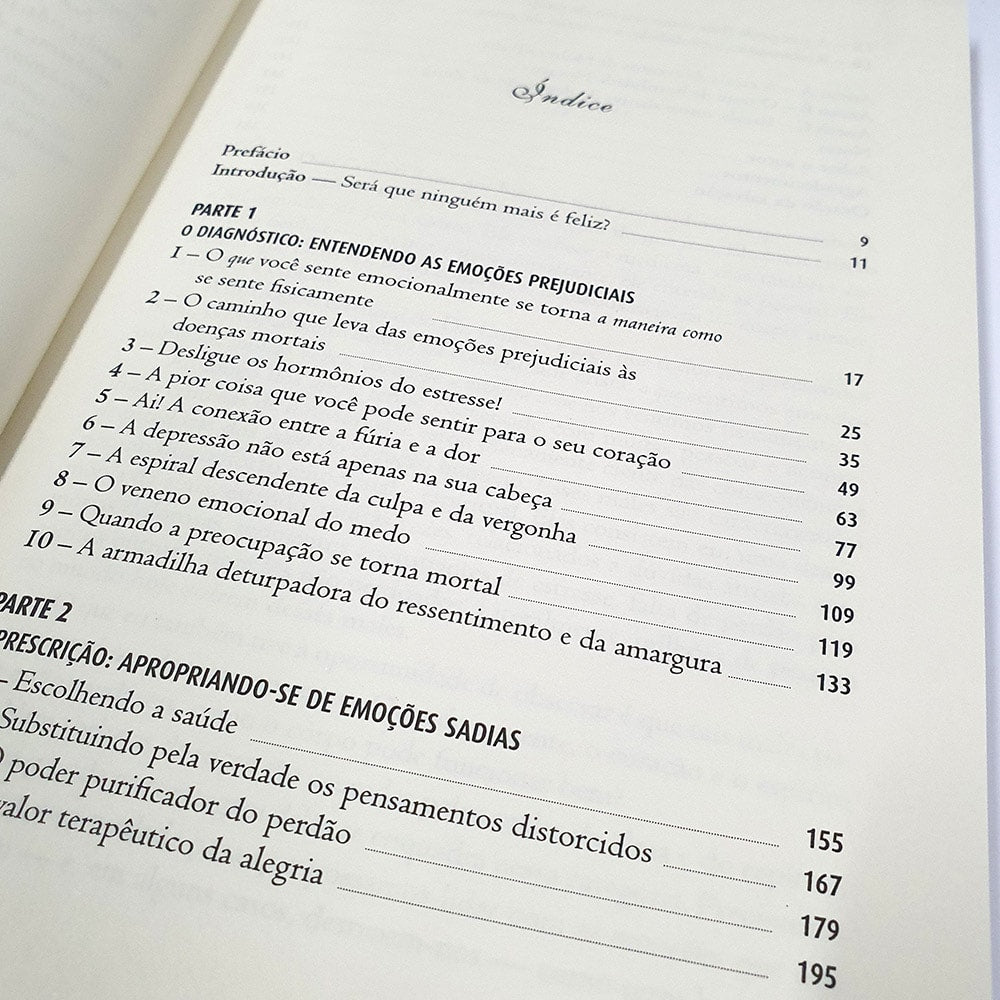 Emoções destrutivas têm um efeito tóxico sobre o corpo e resultam numa ampla variedade de doenças sérias hipertensão, artrite, esclerose múltipla, síndrome do cólon irritável, e até alguns tipos de câncer. A verdade é que você pode estar subtraindo anos de sua expectativa de vida e roubando de si mesmo a saúde física que você tem se esforçado tanto para alcançar.