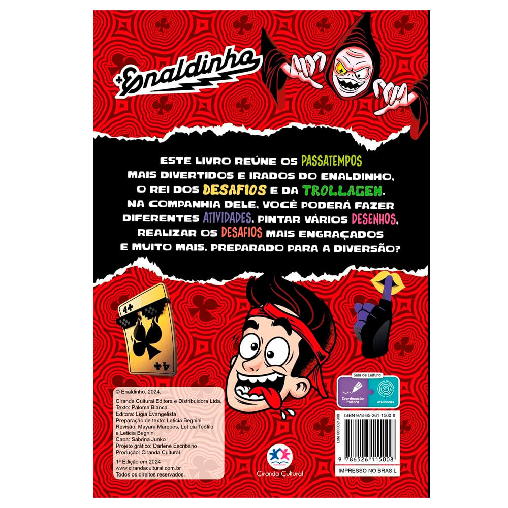 Este livro é a combinação perfeita de diversão e desafios com o mestre das brincadeiras: Enaldinho, o rei dos desafios e da trolagem! Junte-se a ele para encarar atividades incríveis, desvendar labirintos malucos, colorir desenhos superdivertidos e enfrentar os desafios mais engraçados e inusitados. Com uma variedade de passatempos que vão testar sua criatividade e senso de humor, este livro é garantia de horas de entretenimento.