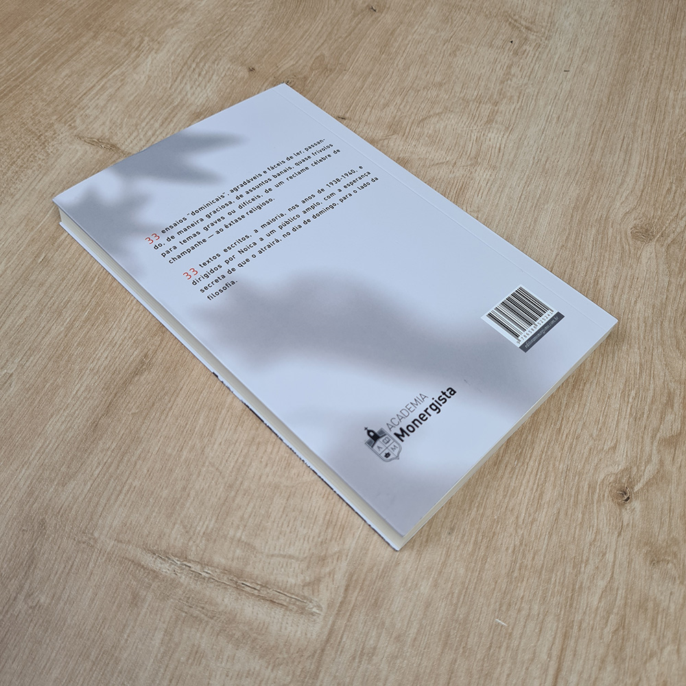 33 ensaios “dominicais”, agradáveis e fáceis de ler, passando, de maneira graciosa, de assuntos banais, quase fútil para temas graves ou difíceis, de um reclame célebre de champanhe — ao êxtase religioso.