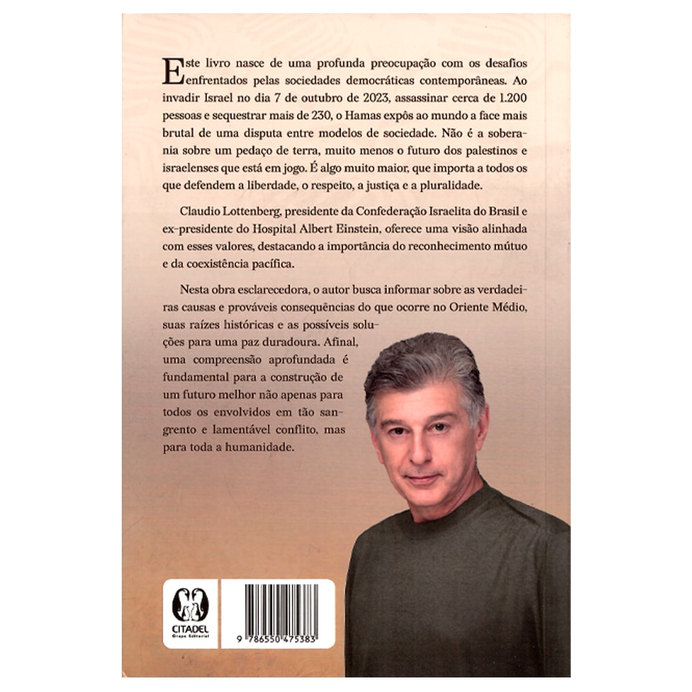 Este livro aborda os desafios das sociedades democráticas contemporâneas, evidenciados pela invasão de Israel pelo Hamas em 7 de outubro de 2023, que resultou em centenas de mortes e sequestros. Mais do que a disputa territorial, a obra discute a luta entre modelos de sociedade, com foco em valores como liberdade, justiça e pluralidade. Claudio Lottenberg, presidente da Confederação Israelita do Brasil, analisa as causas e consequências do conflito, explorando suas raízes históricas e possíveis soluções para uma paz duradoura. O autor defende a importância da compreensão profunda para um futuro melhor para todos.