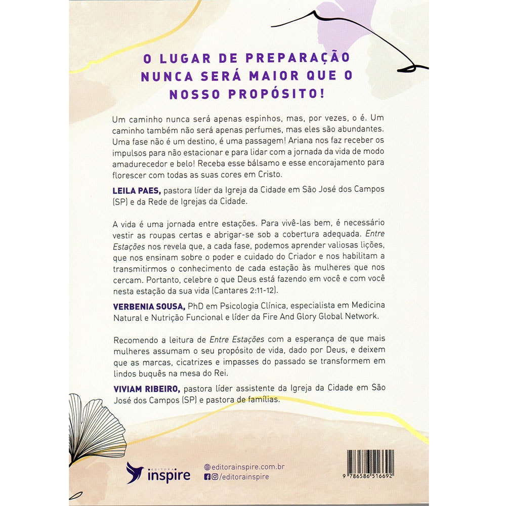 Deus criou você, mulher, para impactar o mundo, para florescer e gerar frutos que alimentam e inspiram todos ao seu redor, independente do ambiente e contexto que esteja vivendo. Porém, as pressões da vida têm trazido desânimo, distração, cansaço e, até mesmo, questionamentos sobre o tempo e o agir de Deus em você, fazendo com que a caminhada entre as estações da sua vida se pareça mais com um deserto do que com a promessa de Deus. É exatamente nesta jornada Entre Estações que Deus deseja manifestar o poder Dele, revelando a você todo o seu potencial de florescimento, crescimento e amadurecimento. Afinal, a crise de hoje é apenas o primeiro passo no caminho em direção à promessa, à nova estação! Por isso, com fé e coragem, ouse florescer!