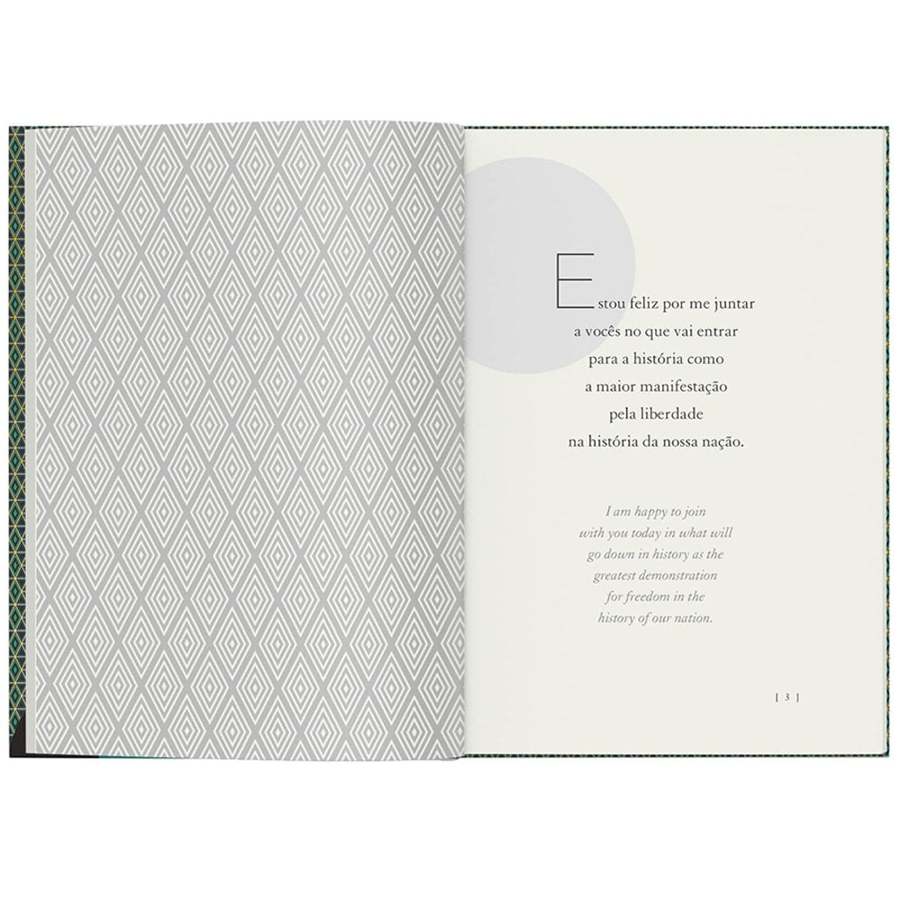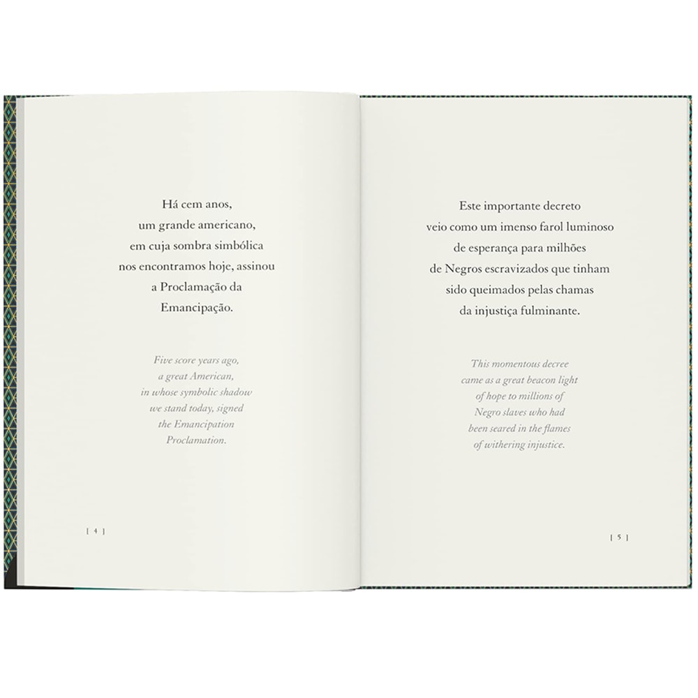Este livro bilíngue, com prefácio da poeta e ativista Amanda Gorman e traduzida por Stephanie Borges, aborda o discurso completo, distribuído em versos em inglês e traduzidos a cada página, de modo que o leitor possa refletir sobre cada palavra escolhida pelo autor. É um tributo ao líder e a sua contribuição que continua a inspirar as novas gerações a lutarem por justiça e igualdade.