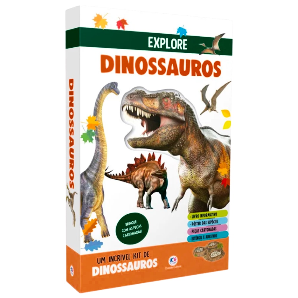 Descubra o mundo fascinante dos dinossauros com este kit completo e interativo! Monte peças cartonadas para criar seus próprios dinossauros, use estênceis para desenhos incríveis e explore um livro repleto de informações surpreendentes sobre essas criaturas gigantes que dominaram a Terra.