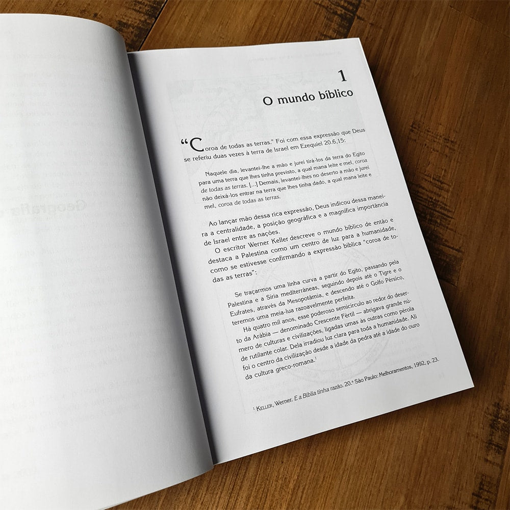 Geografia da Terra Santa e das terras bíblicas é um manual riquíssimo em informações sobre o mundo bíblico em geral: nações, povos, hidrografia, orografia, planícies, desertos, vales, estradas e caminhos, clima, economia, usos e costumes, cidades etc. Há também muitos recursos visuais (fotografias e ilustrações) que serão de auxílio ao estudante das Escrituras.