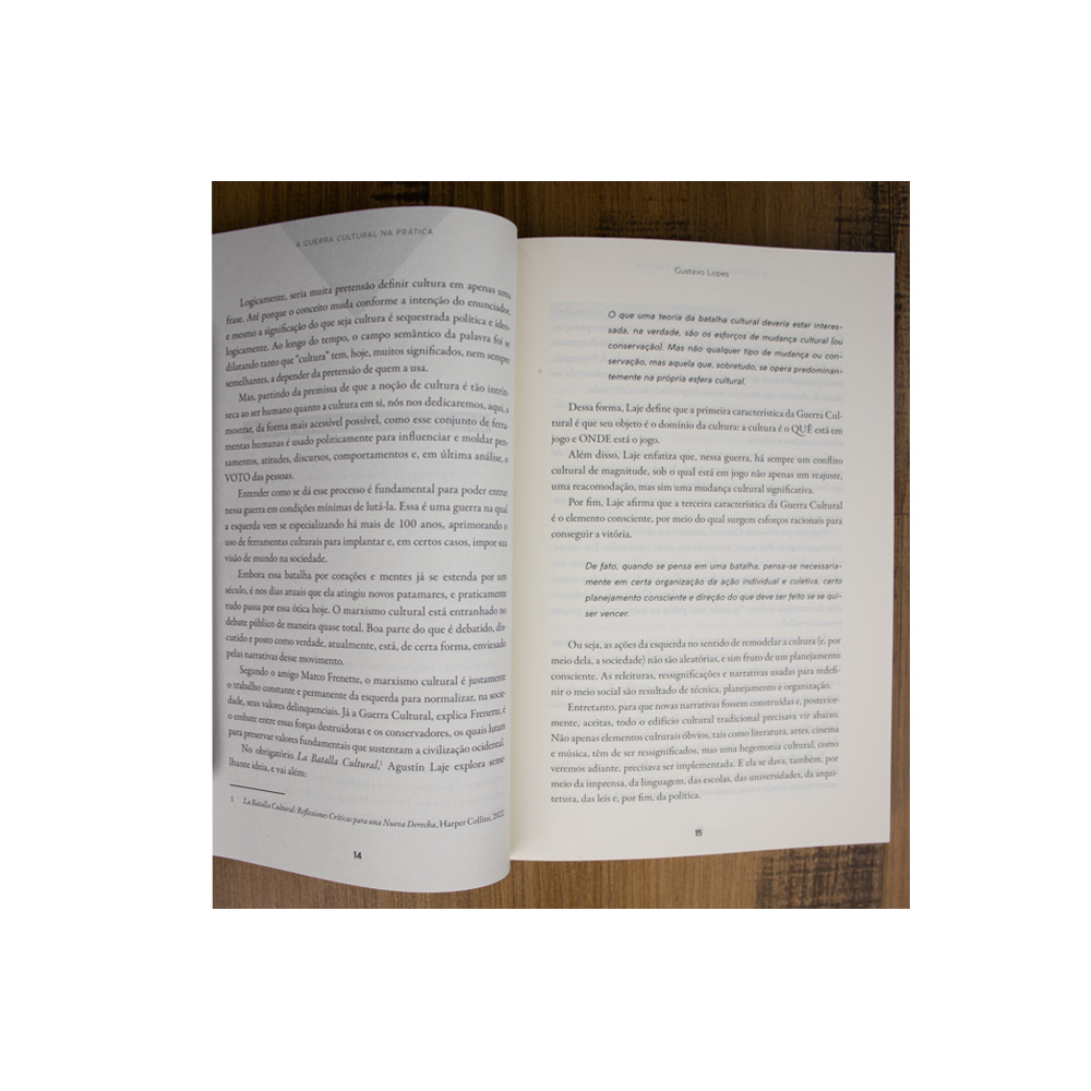 Com uma linguagem clara, os autores revelam as estratégias utilizadas pela nova esquerda para silenciar opositores e demonstram como se posicionar de forma assertiva nas mais diversas situações. "Este é um guia para aqueles que desejam compreender as ramificações da Guerra Cultural em inúmeros setores e como ela constrói sua teia de destruição do tecido social.Este é um tratado completo sobre Guerra Cultural, com soldados que travam batalhas diárias dentro desse contexto beligerante. A leitura deste livro colocará os leitores em outro patamar de conhecimento, e tem o condão de prepará-los para o debate e para a atuação prática. MÁRIO FRIAS – DEPUTADO FEDERAL"