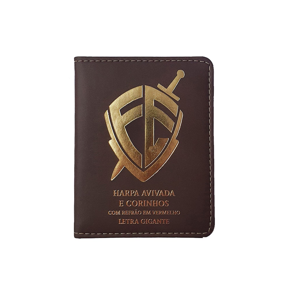 Harpa Avivada e Corinhos Médio | Letra Gigante | Escudo Fé Marrom Capa Luxo