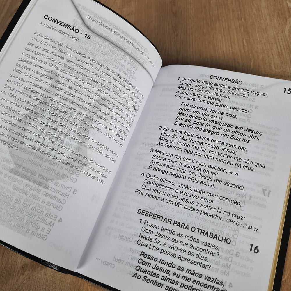 De formato agradável, fácil leitura e beira dourada. Uma linda lembrança para um momento especial da história do Movimento Pentecostal.