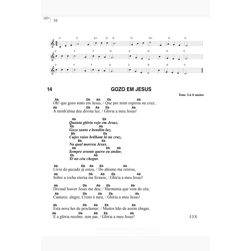 Os clássicos hinos da Harpa Cristã agora escrito com cifras, para instrumentistas iniciantes ou com pouco conhecimento em leitura de partituras musicais.
