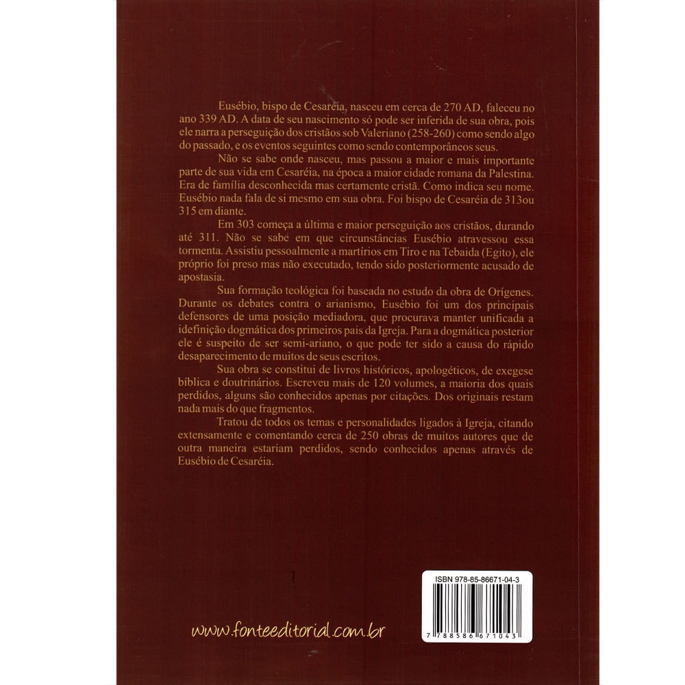Eusébio de Cesaréia foi um cristão dos primeiros séculos depois de cristo, ele viveu na época do imperador romano constantino. Seu livro, Historia Eclesiástica, é um registro histórico da existência e evolução da igreja até o período contemporâneo a ele, entre o terceiro e o quarto século da era cristã. um documento de 1600 anos, escrito inicialmente em grego, muito importante para pesquisadores que estudam sobre o cristianismo primitivo. Como viviam os cristãos como suportaram a perseguição romana quem os perseguiu nesta obra, algumas dessas perguntas podem ser respondidas. De maneira geral, o livro relata a vida dos primeiros cristãos, o martírio dos servos de jesus e a continuação da igreja depois do livro de atos dos apóstolos.