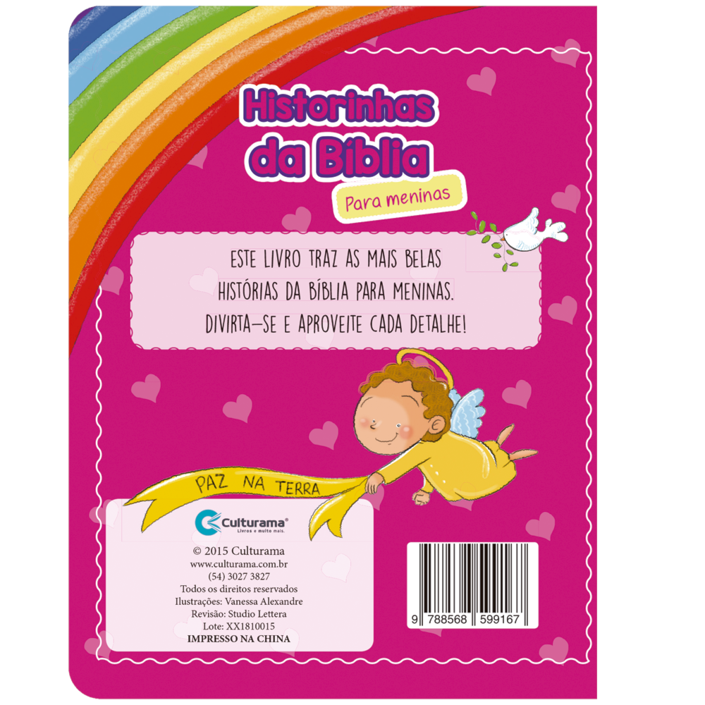As mais belas histórias da Bíblia estão reunidas nesse livro que vem com pequenos textos para uma fácil compreensão. São passagens como a criação do mundo, José do Egito e Moisés.