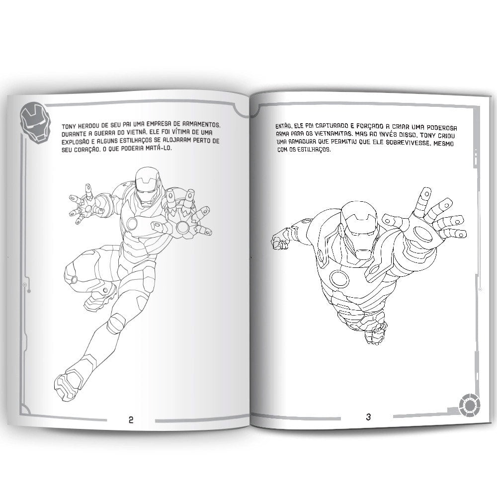Descubra como o empresário Tony Stark construiu uma armadura para virar o Homem de Ferro e ajude-o a colorir todos os desenhos desse livro.
