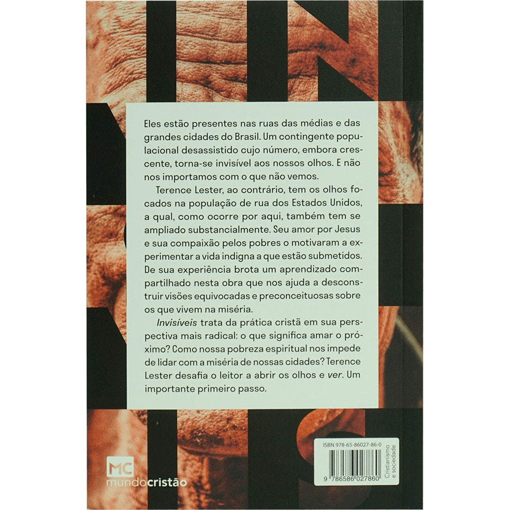 Invisíveis trata da prática cristã em sua perspectiva mais radical: o que significa amar o próximo? Como nossa pobreza espiritual nos impede de lidar com a miséria de nossas cidades? Terence Lester desafia o leitor a abrir os olhos e ver. Um importante primeiro passo.