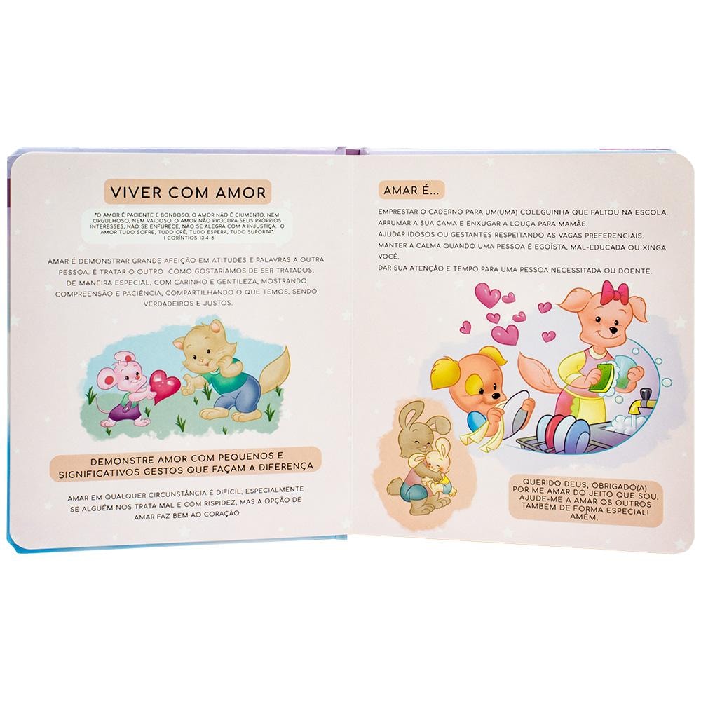 Um livro delicado, elaborado para a criança iniciar o seu diálogo com Deus por meio da oração. Um verdadeiro tesouro, pois traz a oração para o mundo diário da criança, alimentando o coração dela de bons pensamentos e fazendo-o transbordar de alegria.