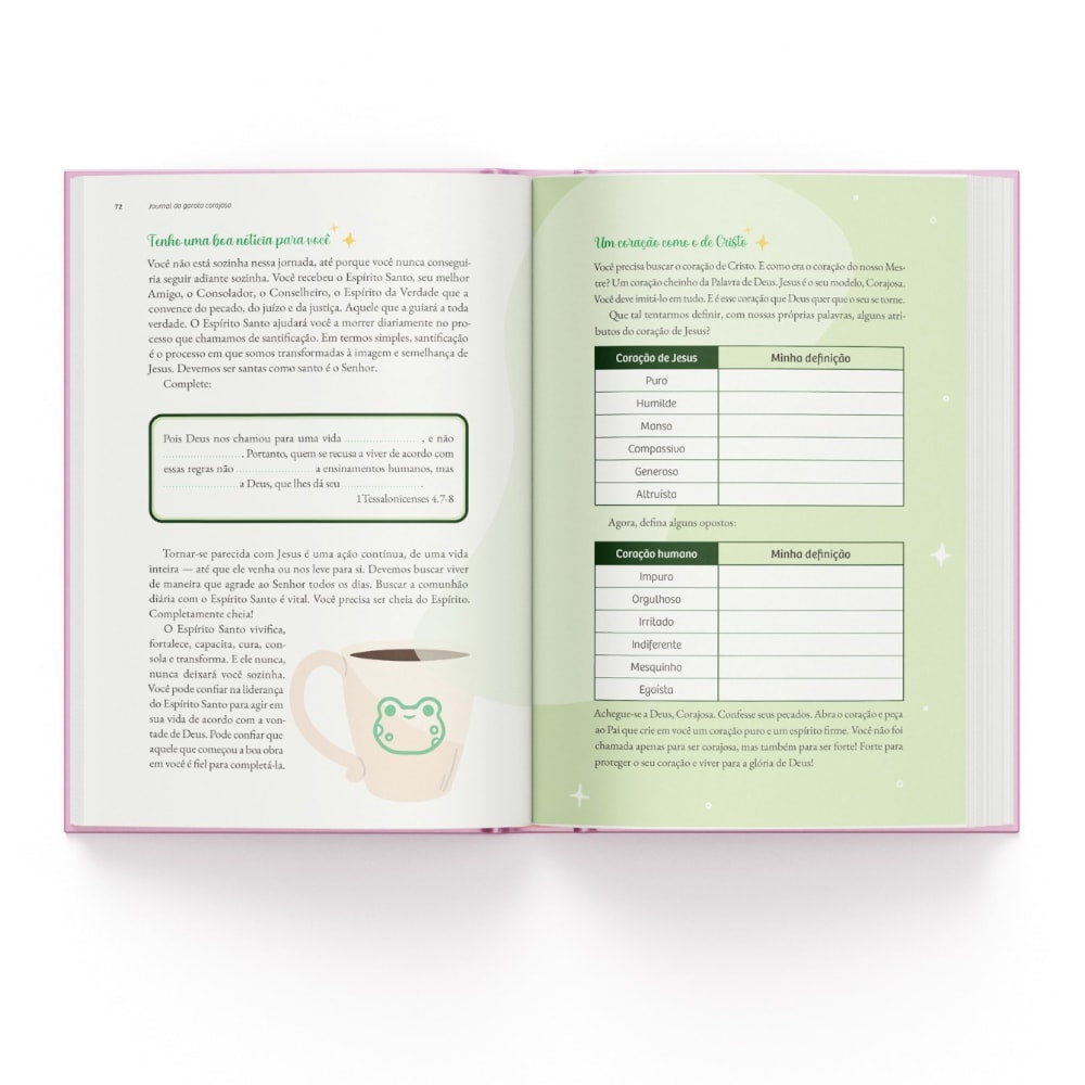 Este não é um guia com respostas prontas, mas um convite para uma reflexão íntima e pessoal, como uma conversa sincera com uma amiga em uma cafeteria aconchegante. Pegue suas canetas coloridas e caderninho e venha descobrir o poder da coragem em cada página!