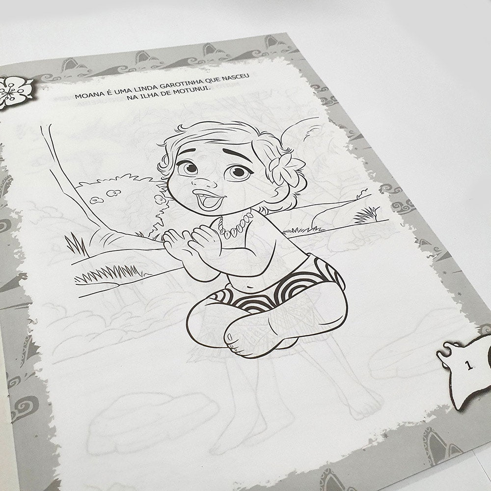 Moana vive em Motunui com sua tribo, mas sempre quis descobrir o que existia fora dali. Depois de ouvir as histórias de sua avó, ela encontra Maui, e os dois vivem uma grande aventura. Viaje com Moana e Maui e deixe essa história bem colorida.