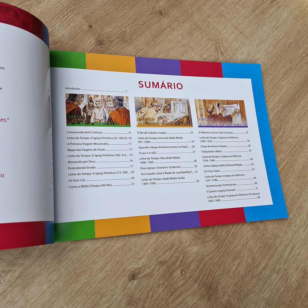 Com ilustrações, imagens e linhas do tempo, este livro dá vida à história da igreja! Passe pela igreja primitiva, pela igreja medieval e pela igreja missionária, explorando eventos fundamentais como o Concílio de Niceia e a Reforma, até os dias mais recentes. Além disso, aprenda sobre o povo que Deus usou e o impacto causado por ele no passado e no presente.
