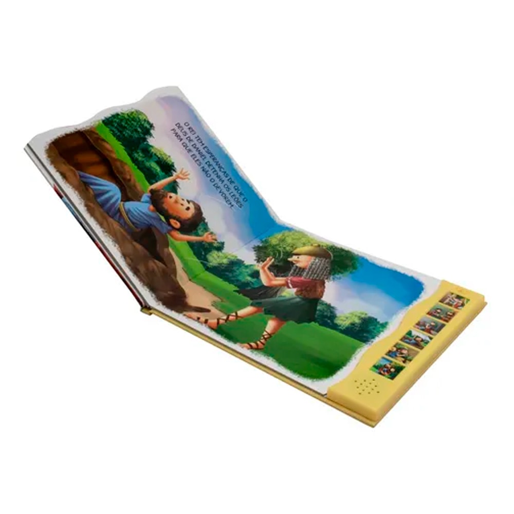 Nesta edição especial, cada página é uma nova descoberta. As crianças podem apreciar as ilustrações vibrantes enquanto os pais leem a história. A diversão continua ao apertar os botões sonoros, que emitem sons e narram trechos emocionantes da aventura de Daniel na cova dos leões.
