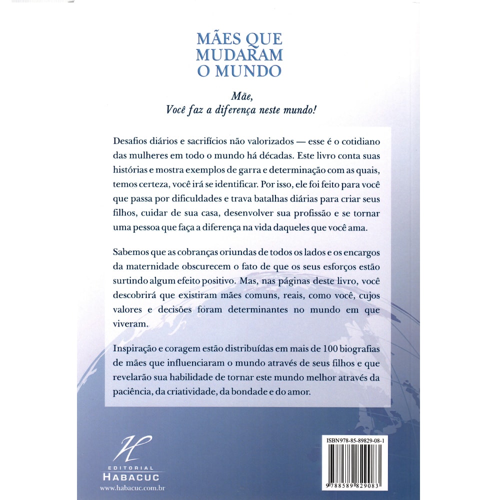 Sabemos que as cobranças oriundas de todos os lados e os encargos da maternidade obscurecem o fato de que os seus esforços estão surtindo algum efeito positivo. Mas, nas páginas deste livro, você descobrirá que existiram mães comuns, reais, como você, cujos valores e decisões foram determinantes no mundo em que viveram.
