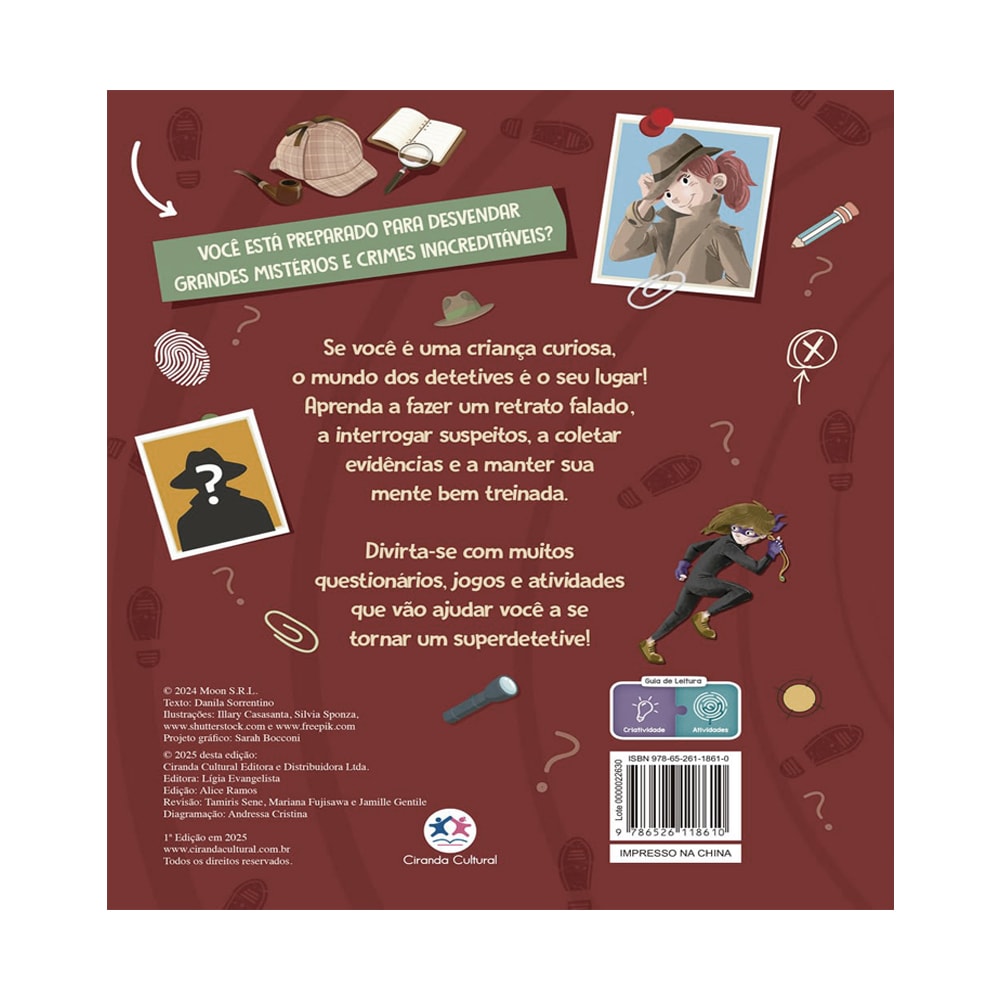 Se você é uma criança curiosa, o mundo dos detetives é feito para você! Aprenda a fazer retratos falados, interrogar suspeitos, coletar pistas e treinar sua mente. Com muitos jogos e atividades divertidas, você vai se tornar um superdetetive em pouco tempo!