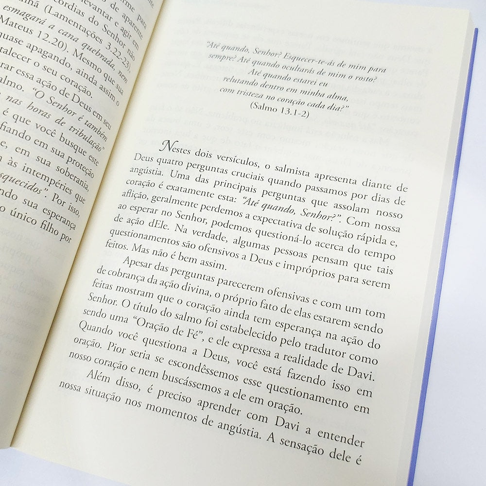 Nesse contexto, temos necessidade de uma palavra amiga, confortante e que use a Palavra de Deus para reforçar a nossa fé e trazer alento ao nosso coração. Uma palavra que nos relembre que o consolador está presente, e que nenhuma de nossas crises pegou Deus de surpresa. E o fato de saber que ele está no controle absoluto de toda nossa vida, trará um novo alento e uma nova perspectiva de vitória e superação dos períodos difíceis. É essa palavra que o autor nos traz neste livro de meditações, apresentando uma abordagem pastoral do livro dos Salmos.