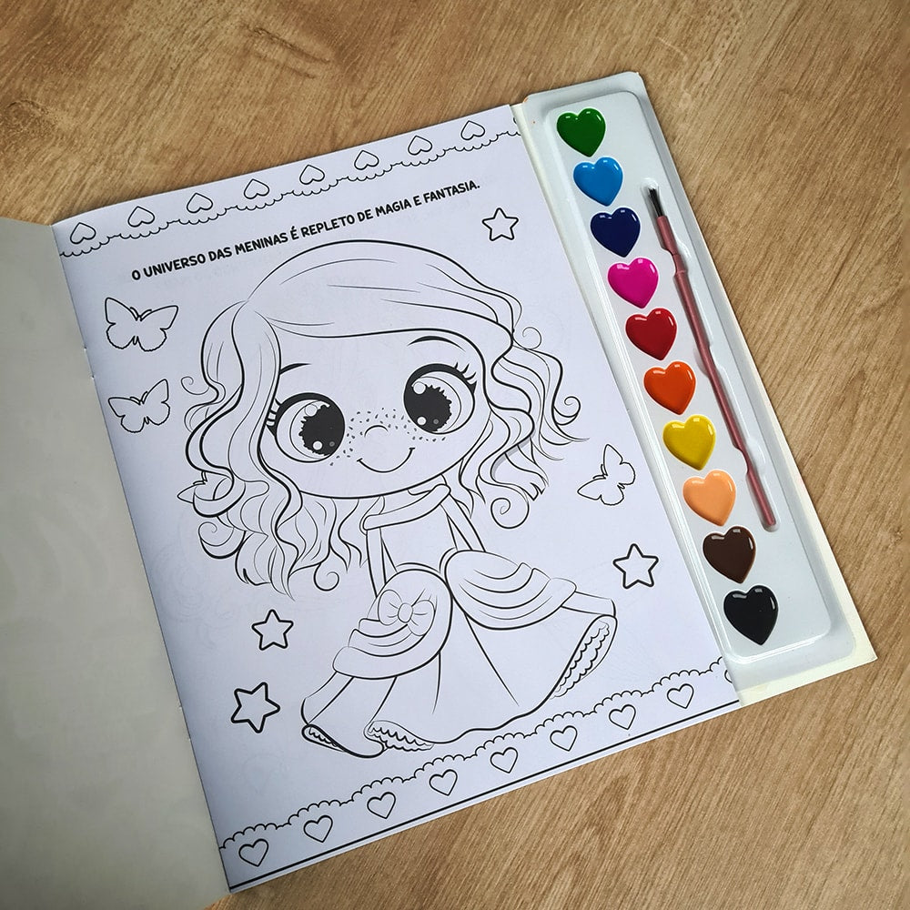 Lindos desenhos para você se distrair e melhorar o seu dia, meninas que adoram colorir vão amar esse livro! Acompanha aquarela, 10 cores e pincel para você pintar de montão!