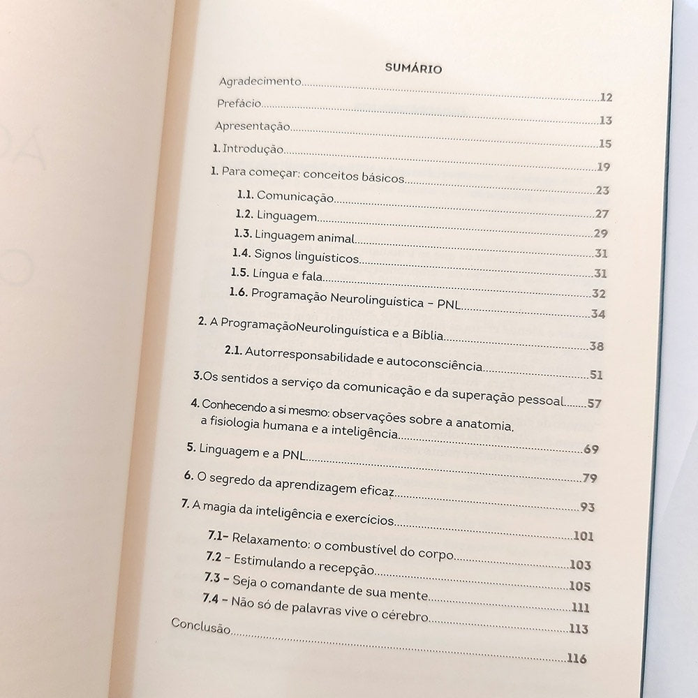 O principal objetivo deste livro é ser um instrumento de ajuda para todos aqueles que querem mudar para ter sucesso em todas as áreas da vida, seja no âmbito profissional, pessoal ou mesmo no espiritual, usando como base a pnl à luz da Bíblia. A intenção dos autores foi criar uma interação entre o conhecimento bíblico e a pnl, gerando assim as mudanças desejadas por todos nós. Esse livro é para você que busca reprogramar a sua mente para alcançar o sucesso.