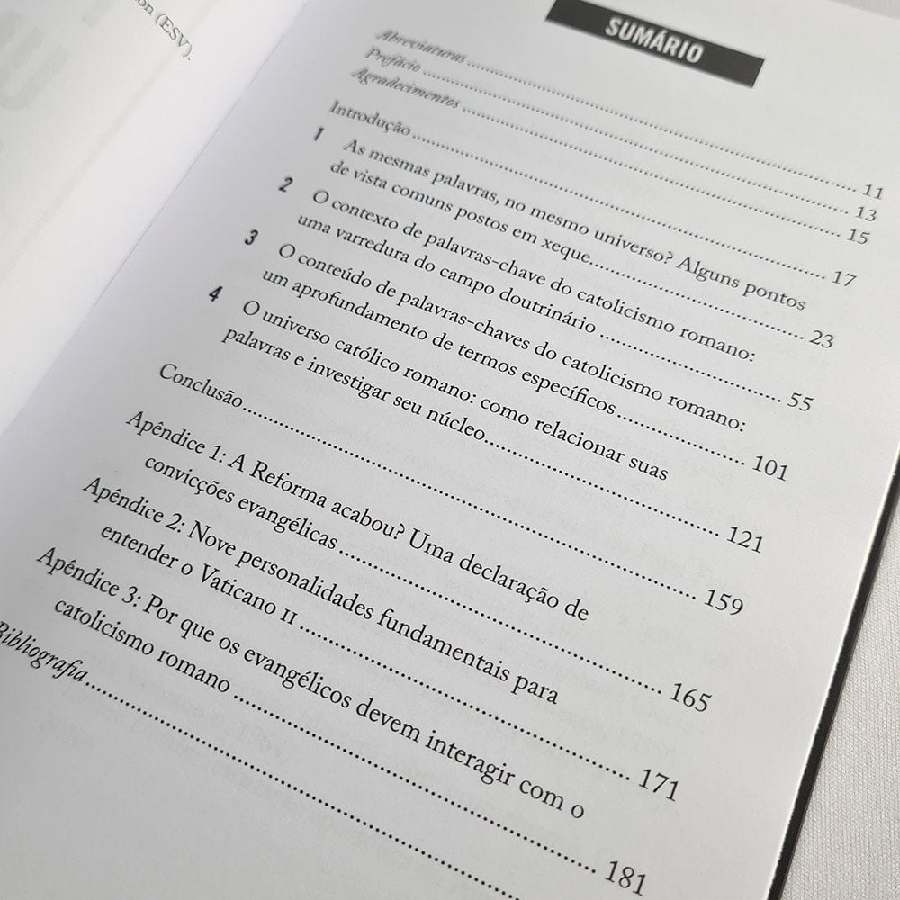 Este livro buscará mostrar por que as falas católicas romanas são semelhantes às do evangelho e, ainda assim, a língua católica romana difere da língua do evangelho. O arcabouço teológico subjacente ao catolicismo romano não está comprometido com o evangelho bíblico e, as palavras que utiliza são distorcidas, além de compreendidas de modo distinto.