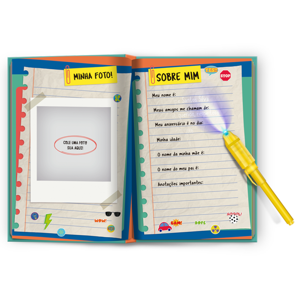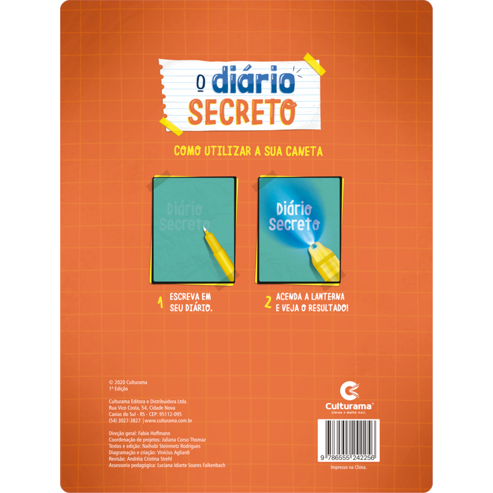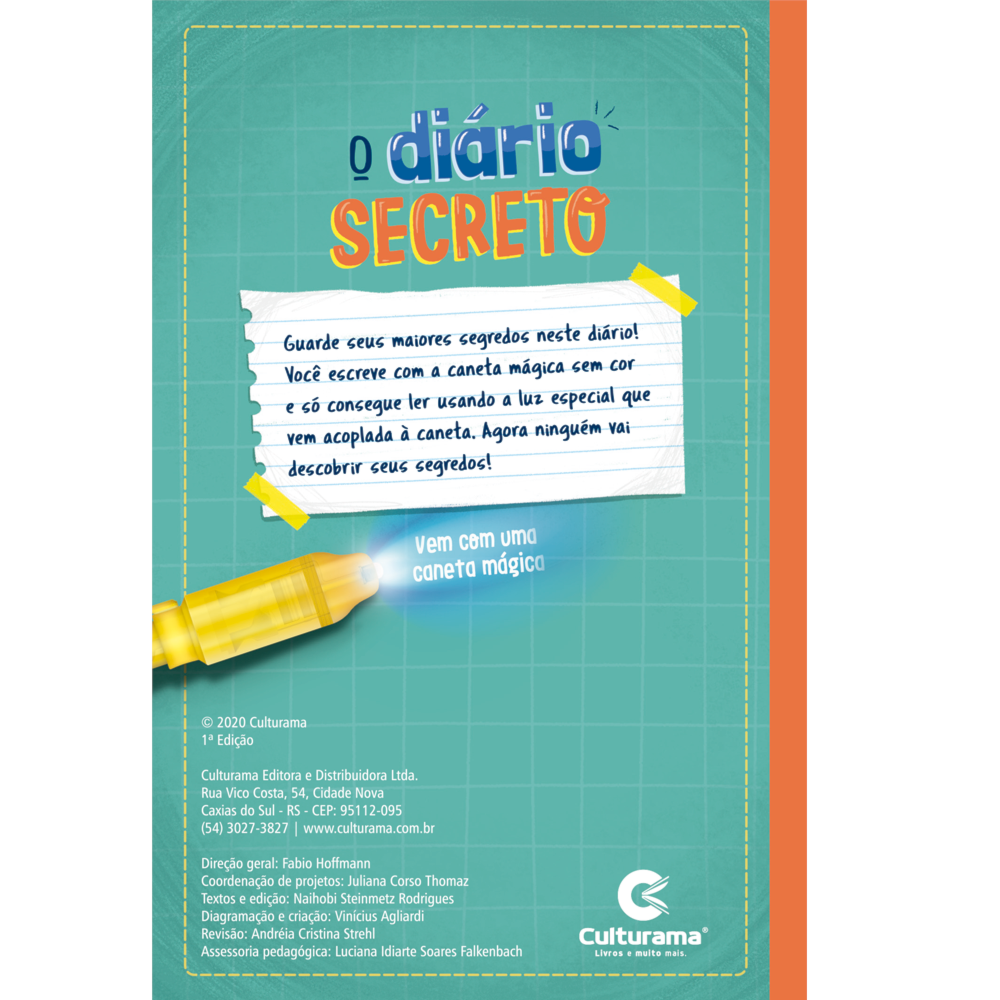 Guarde seus maiores segredos neste diário! Você escreve com a caneta mágica sem cor e só consegue ler usando a luz especial que vem acoplada à caneta. Agora ninguém vai descobrir seus segredos!