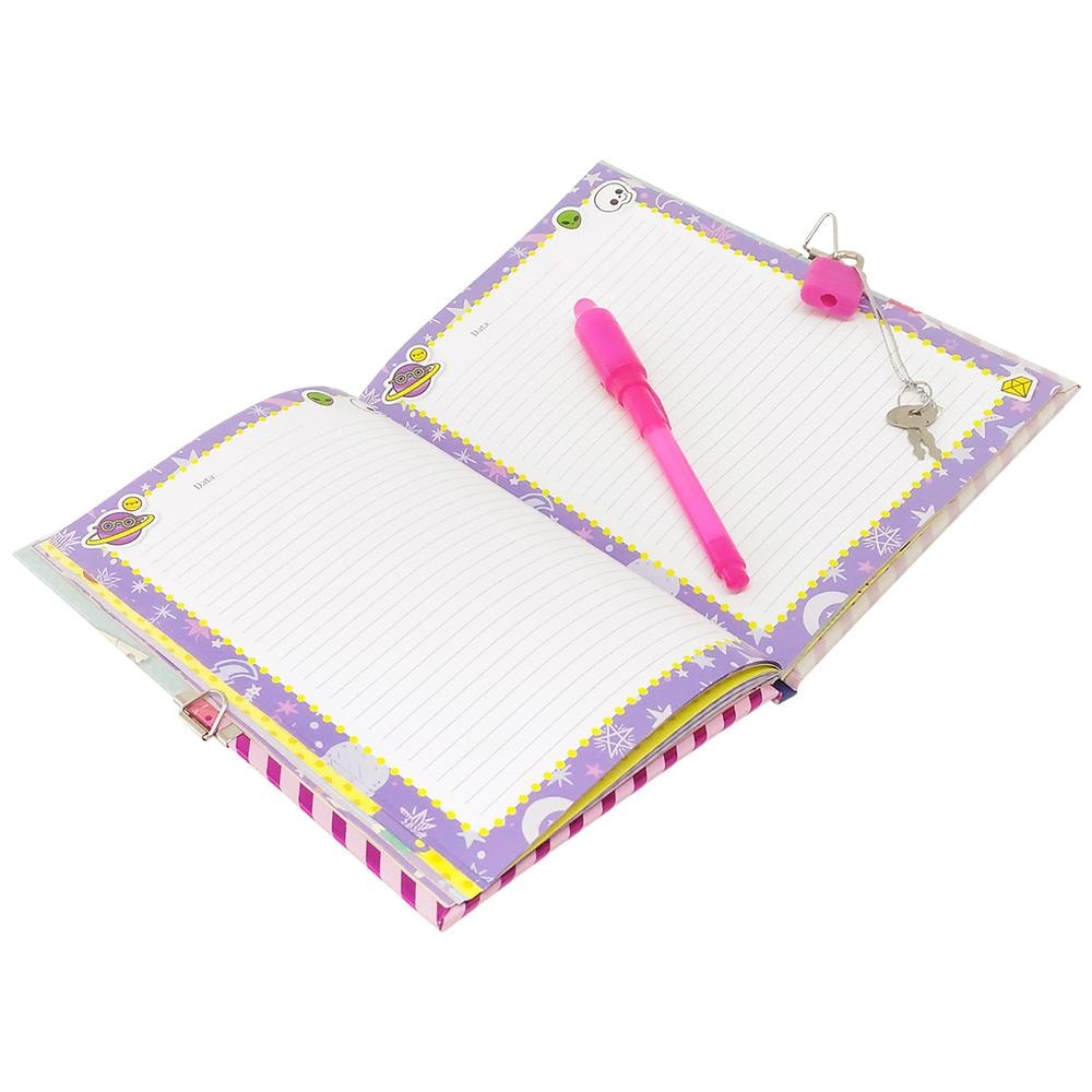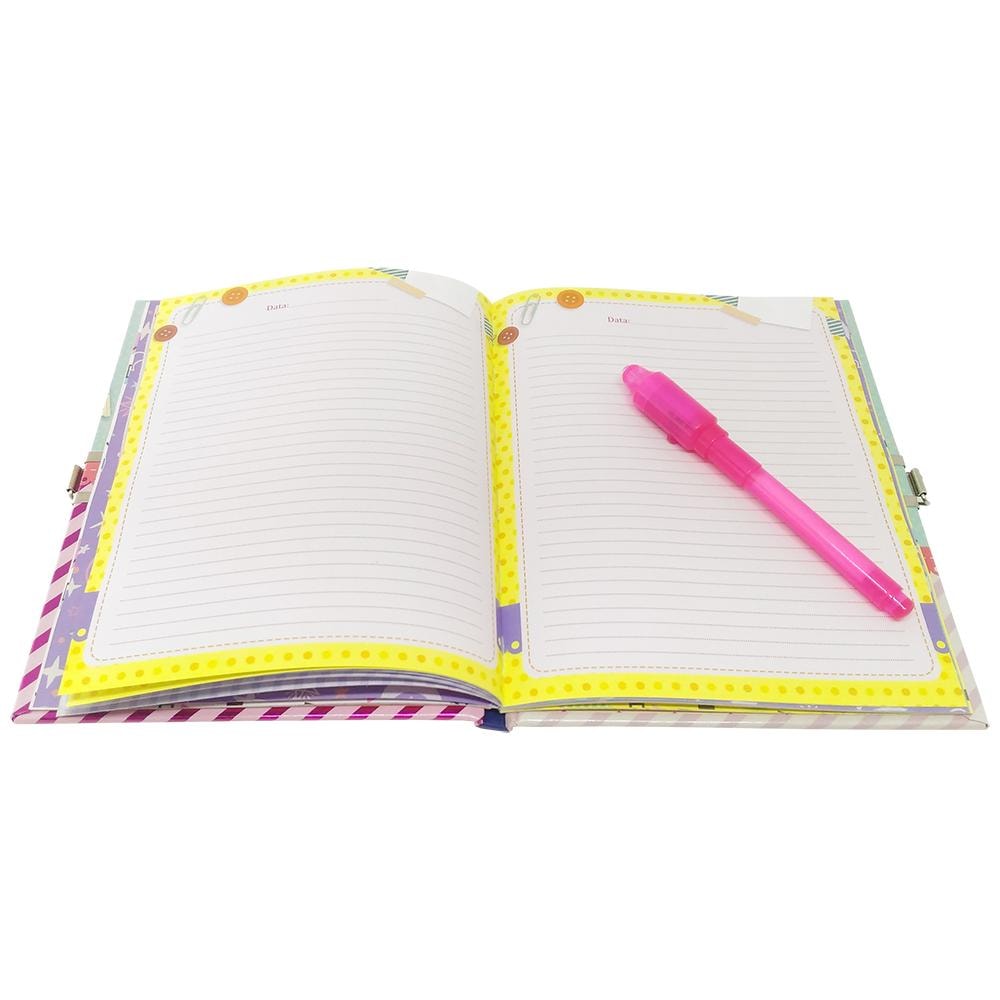 • Acompanha caneta de "tinta invisível" e com luz ultravioleta (revela o texto quando acionada). • Um hábito superpositivo que estimula a criatividade, a produção textual/escrita e a leitura. • Pode ser utilizado para deixar "lembretes-secretos". • Contribui positivamente para o desenvolvimento emocional da criança. Ter um diário, além de divertido, pode ser uma ótima ferramenta de autoconhecimento. Com este diário, seus segredos, sonhos e lembranças mais importantes estarão guardados por um cadeado e uma incrível caneta mágica que só revela o que está escrito com sua luz especial!