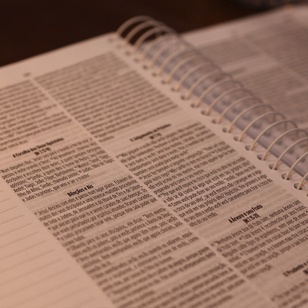 Com margens amplas e generosas, esta Bíblia permite que você registre orações, insights, desenhos e meditações diretamente nas páginas, transformando cada leitura em uma experiência devocional única e significativa. Cada seção se torna um diário espiritual que acompanha seu crescimento de fé ao longo do tempo.