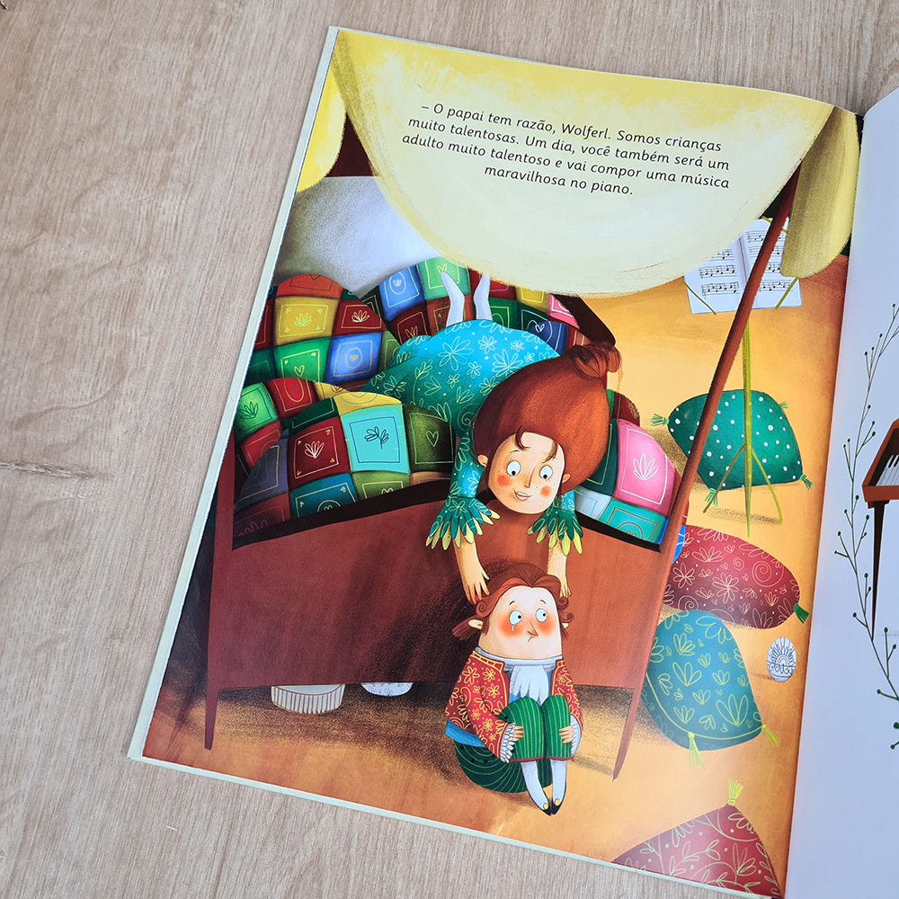 Os gênios da música também já foram crianças. Acompanhe o pequeno Wolfgang Amadeus Mozart e sua Irmã, Nannerl, nesta mágica viagem, guiada pela música, pela imaginação e pelas estrelas. Leia esta incrível história e descubra os sons dos instrumentos!