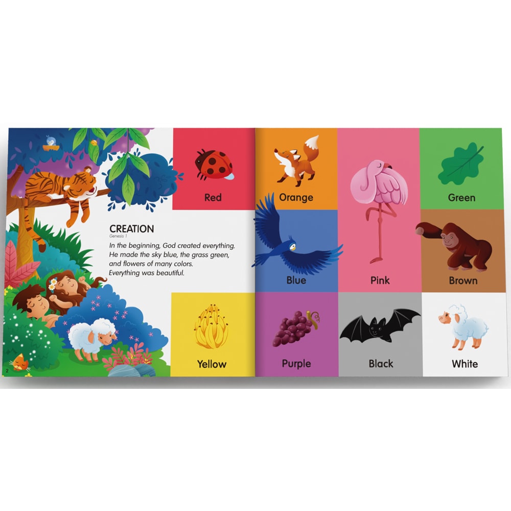 Introduce toddlers to language and faith with My First 100 Words Bible.From Creation to Jesus, each story introduces words for your little ones. With strong contrasting colors and simple stories, it captures toddlers’ attention while helping them learn. Let My First 100 Words Bible spark a love for words and the Bible.