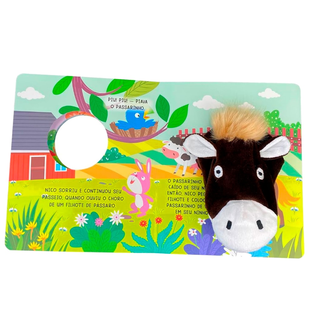 No Livro Fantoche – Nico, o Cavalo Gentil, acompanhe Nico ajudando amigos na fazenda com bondade e generosidade. Em retribuição, os animais preparam uma surpresa especial para ele. Uma história sobre amizade e o poder da gentileza!