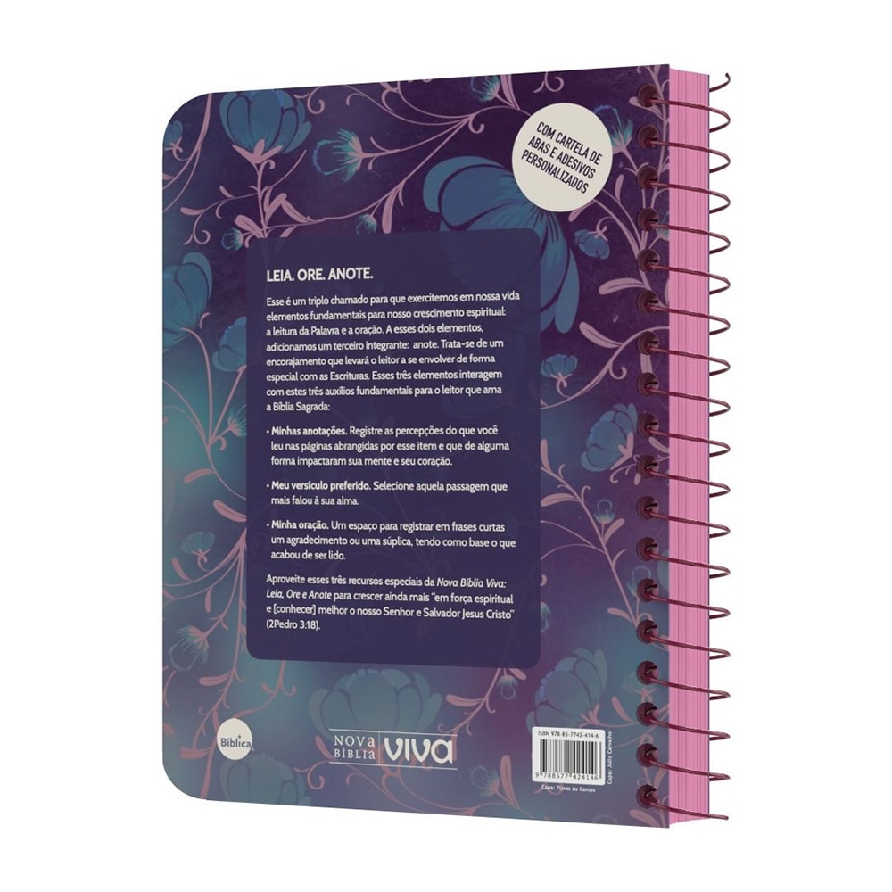 Nova Bíblia Viva Com Espaço para Anotação | Letra Normal | Capa Espiral Flores do Campo