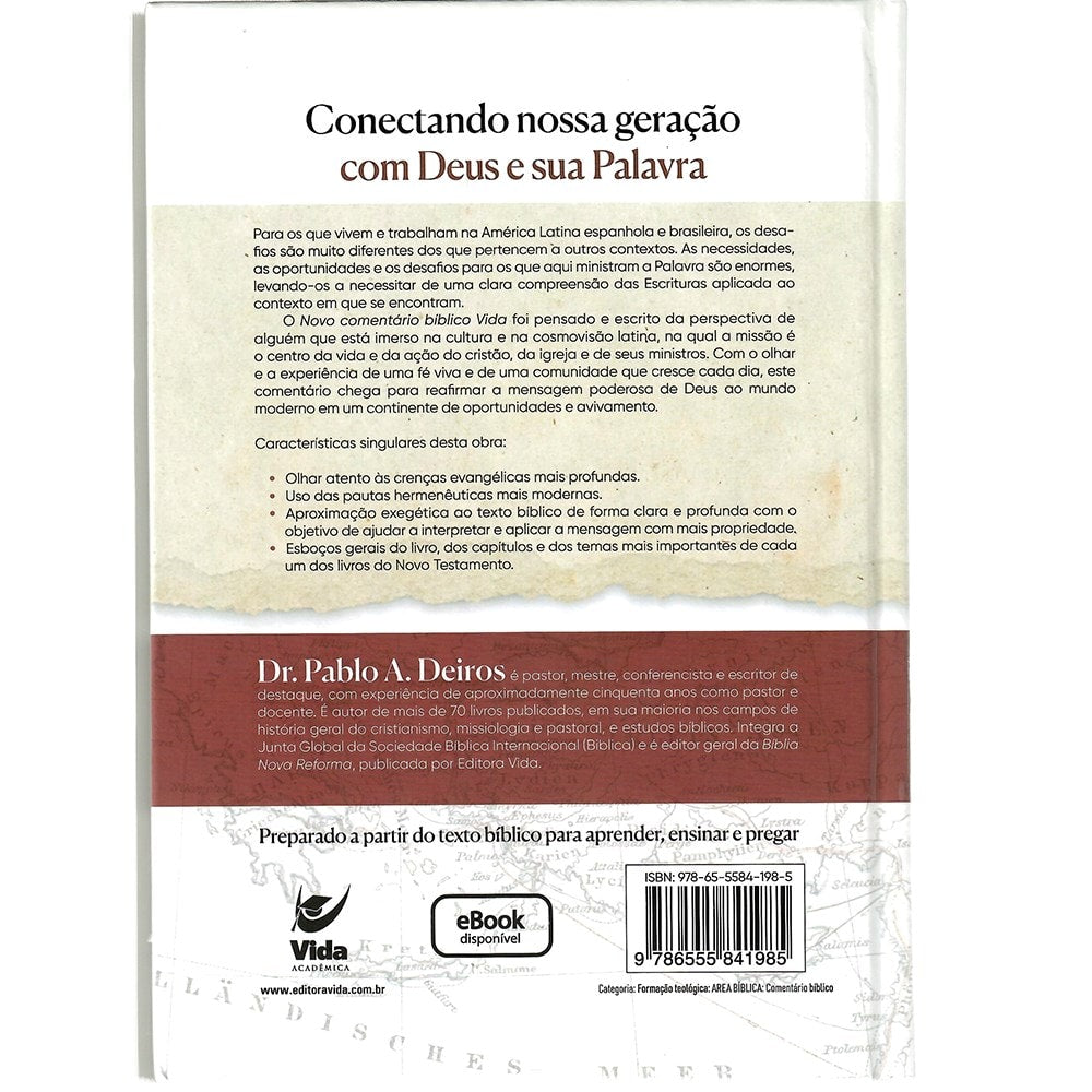 Para os que vivem e trabalham na América Latina espanhola e brasileira, os desafios são muito diferentes dos que pertencem a outros contextos. As necessidades, as oportunidades e os desafios para os que aqui ministram a Palavra são enormes, levando-os a necessitar de uma clara compreensão das Escrituras aplicada ao contexto em que se encontram. O Novo Comentário Bíblico Vida foi pensado e escrito da perspectiva de alguém que está imerso na cultura e na cosmovisão latina, na qual a missão é o centro da vida e da ação do cristão, da igreja e de seus ministros.