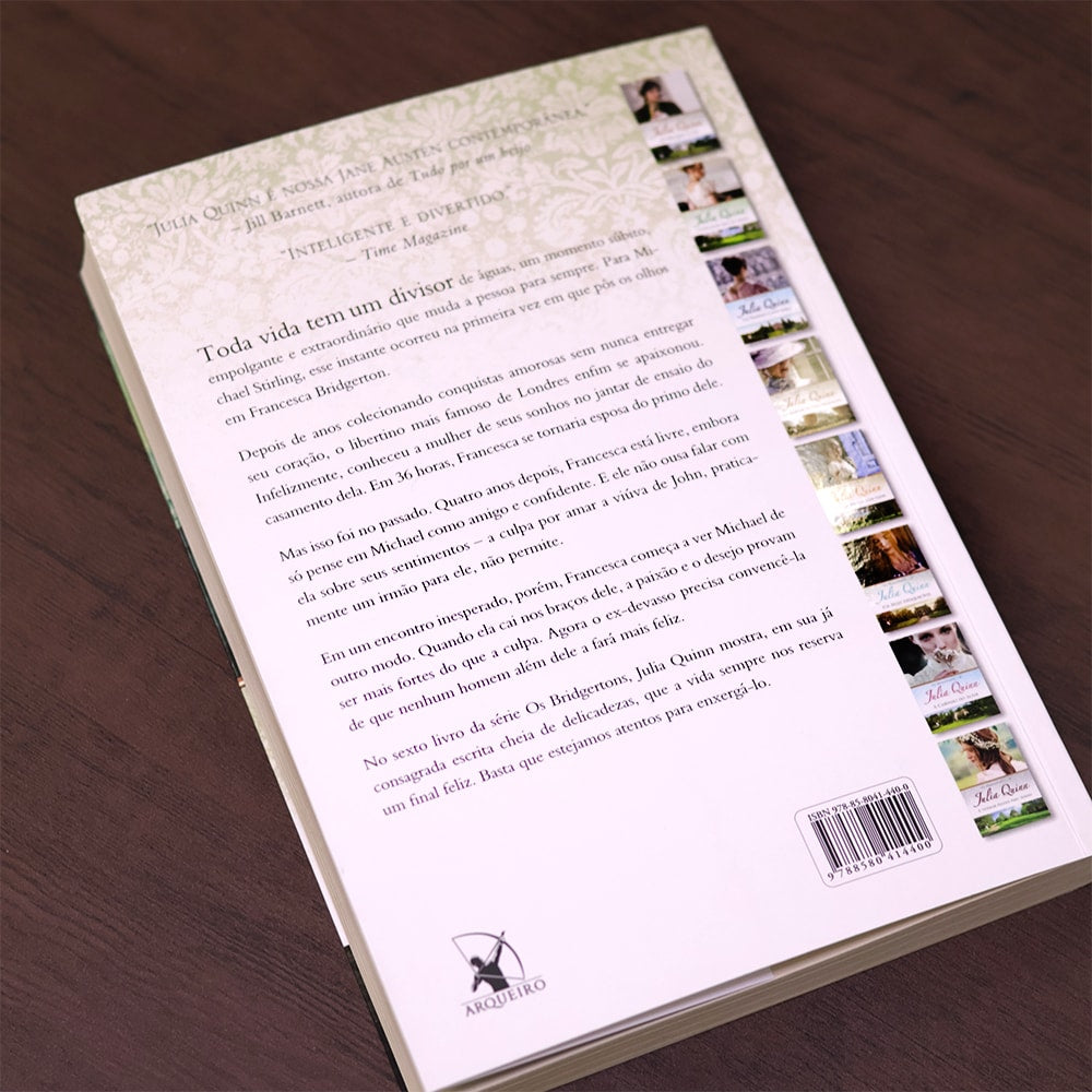 No sexto livro da série Os Bridgertons, Julia Quinn mostra, em sua já consagrada escrita cheia de delicadezas, que a vida sempre nos reserva um final feliz. Basta que estejamos atentos para enxergá-lo.