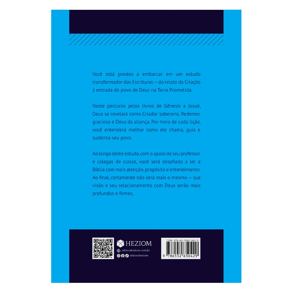 Este guia de leitura conduz o estudante em uma jornada profundamente enriquecedora pelos livros de Gênesis a Josué. As lições são metodicamente organizadas para apresentar o texto bíblico em seu contexto original, destacando verdades teológicas centrais, fazendo conexões com o restante das Escrituras e oferecendo aplicações práticas que dialogam diretamente com a vida e os desafios do jovem cristão de hoje.