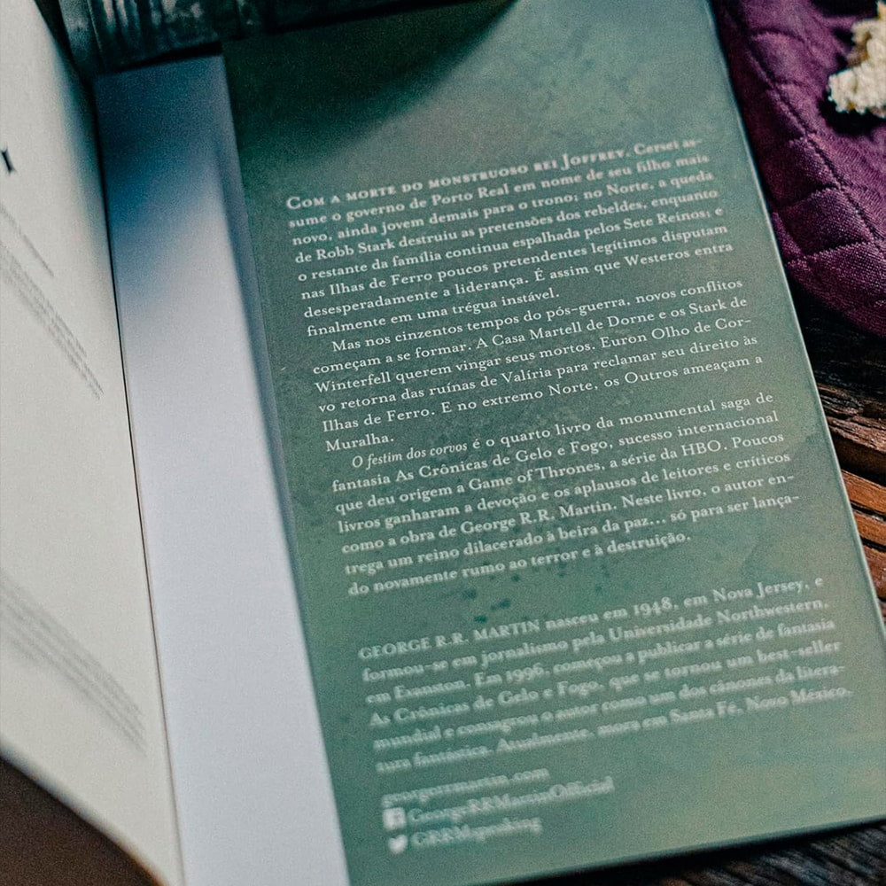 O Festim dos Corvos é o quarto livro de As Crônicas de Gelo e Fogo, onde George R. R. Martin mergulha Westeros em um cenário de paz aparente, prestes a ser destruída por novas traições e disputas. Com Joffrey Baratheon e Robb Stark fora de cena, os lordes competem pelo controle das Ilhas de Ferro, enquanto sobreviventes, bandidos e renegados lutam pelo espólio dos mortos.