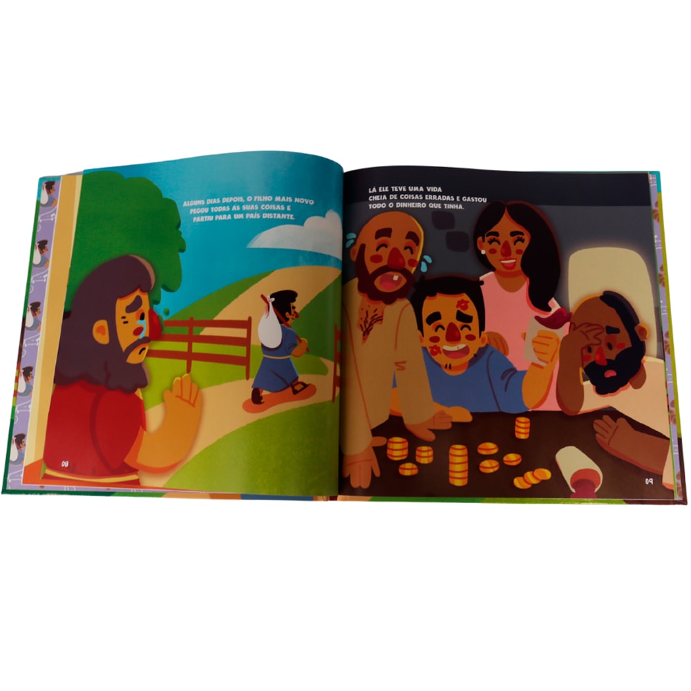 Este livro conta a história famosa de jesus sobre o filho pródigo.