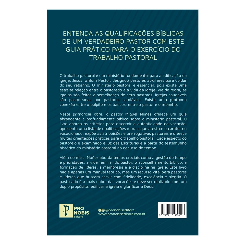 Com base nas Escrituras e na tradição histórica da igreja, Nuñez aborda temas cruciais como gestão do tempo, equilíbrio entre vida familiar e ministerial, aconselhamento bíblico, formação de líderes, membresia e disciplina eclesiástica. Mais do que um manual teórico, este livro é um recurso indispensável para pastores e líderes que desejam servir com excelência, fidelidade e alegria.