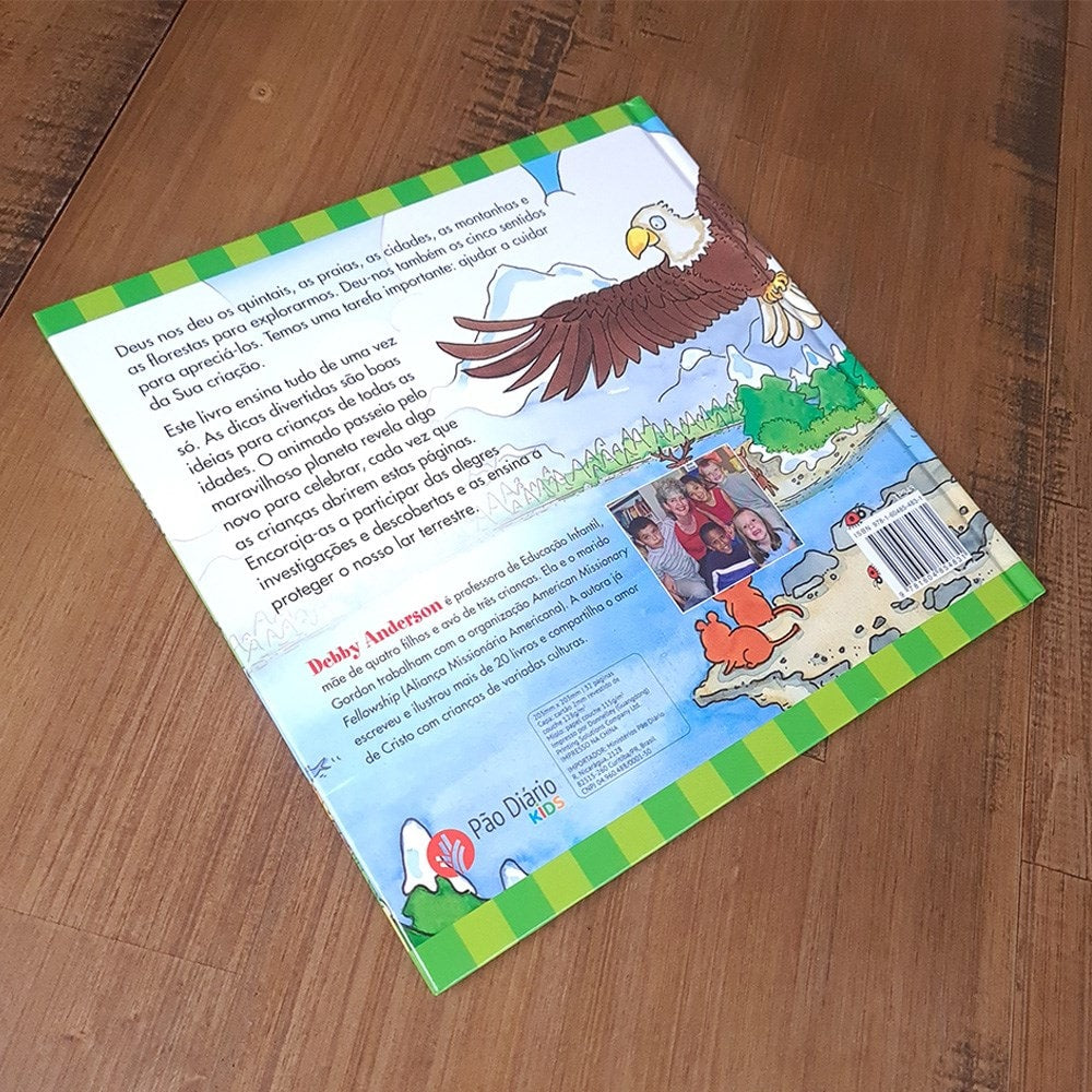 Deus nos deu os quintais, as praias, as cidades, as montanhas e as florestas para explorarmos. Deu-nos também os cinco sentidos para apreciá-los. Temos uma tarefa importante: ajudar a cuidar da Sua criação. Este livro ensina tudo de uma vez só. As dicas divertidas são boas ideias para crianças de todas as idades. O animado passeio pelo maravilhoso planeta revela algo novo para celebrar, cada vez que as crianças abrirem estas páginas. Encoraja-as a partilhar das alegres investigações e descobertas e as ensina a proteger o nosso lar terrestre. Debby Anderson é professora de Educação Infantil, mãe de quatro filhos e avó de três crianças. Ela e o marido Gordon trabalham com a organização American Missionary Fellowship (Aliança Missionária Americana). A autora já escreveu e ilustrou mais de 25 livros e compartilha o amor de Cristo com crianças de variadas culturas.