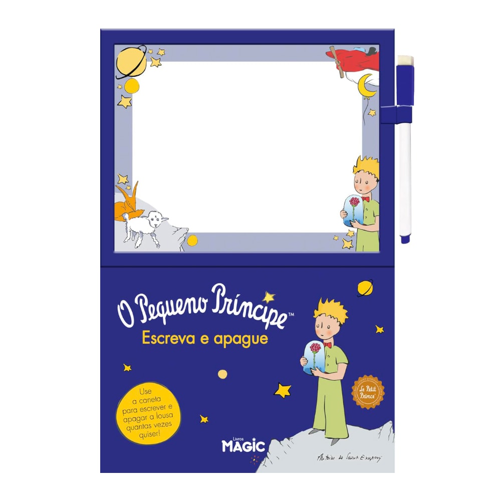 Divirta-se aprendendo a escrever com o Pequeno Príncipe! Use a caneta para treinar suas letras e, quando terminar, é só apagar e começar de novo. Aprenda, brinque e crie suas próprias histórias — quantas vezes quiser!