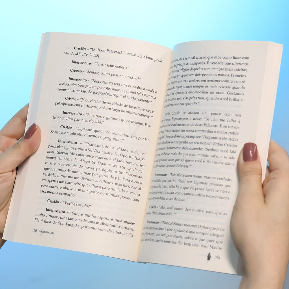 Através da história de Cristão, Bunyan explora temas como fé, arrependimento, perseverança e redenção. O livro é uma reflexão profunda sobre a condição humana e a busca pela verdadeira felicidade espiritual. "O Peregrino" continua a ser amplamente lido e apreciado até os dias atuais, cativando leitores com sua mensagem de esperança, perdão e fé inabalável.