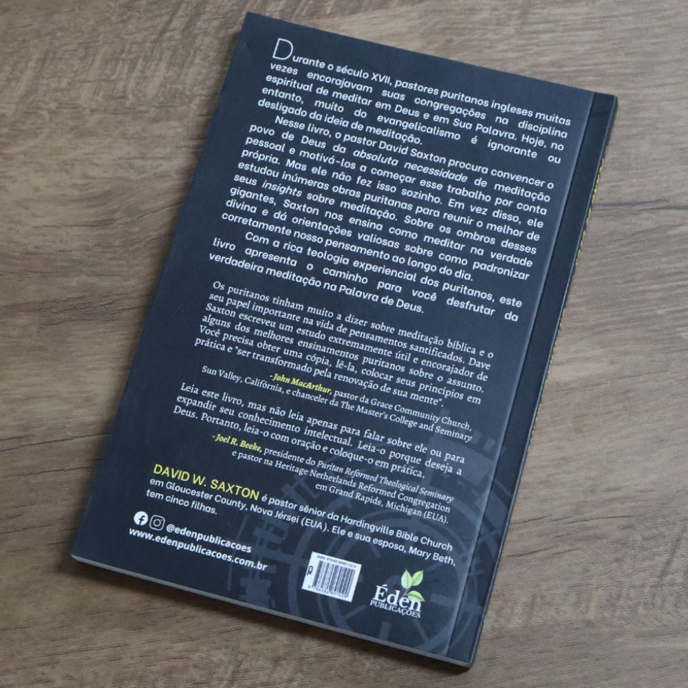 Neste livro, o pastor David Saxton busca reacender a importância da meditação pessoal entre os crentes e motivá-los a adotar essa prática. Saxton estudou profundamente as obras dos puritanos para compilar o melhor de seus insights sobre a meditação. Com base nesses ensinamentos históricos, ele nos guia em como meditar na verdade divina e oferece orientações práticas para moldar nosso pensamento ao longo do dia. Enraizado na rica teologia experiencial dos puritanos, este livro é um recurso valioso para aqueles que desejam experimentar a verdadeira meditação na Palavra de Deus.