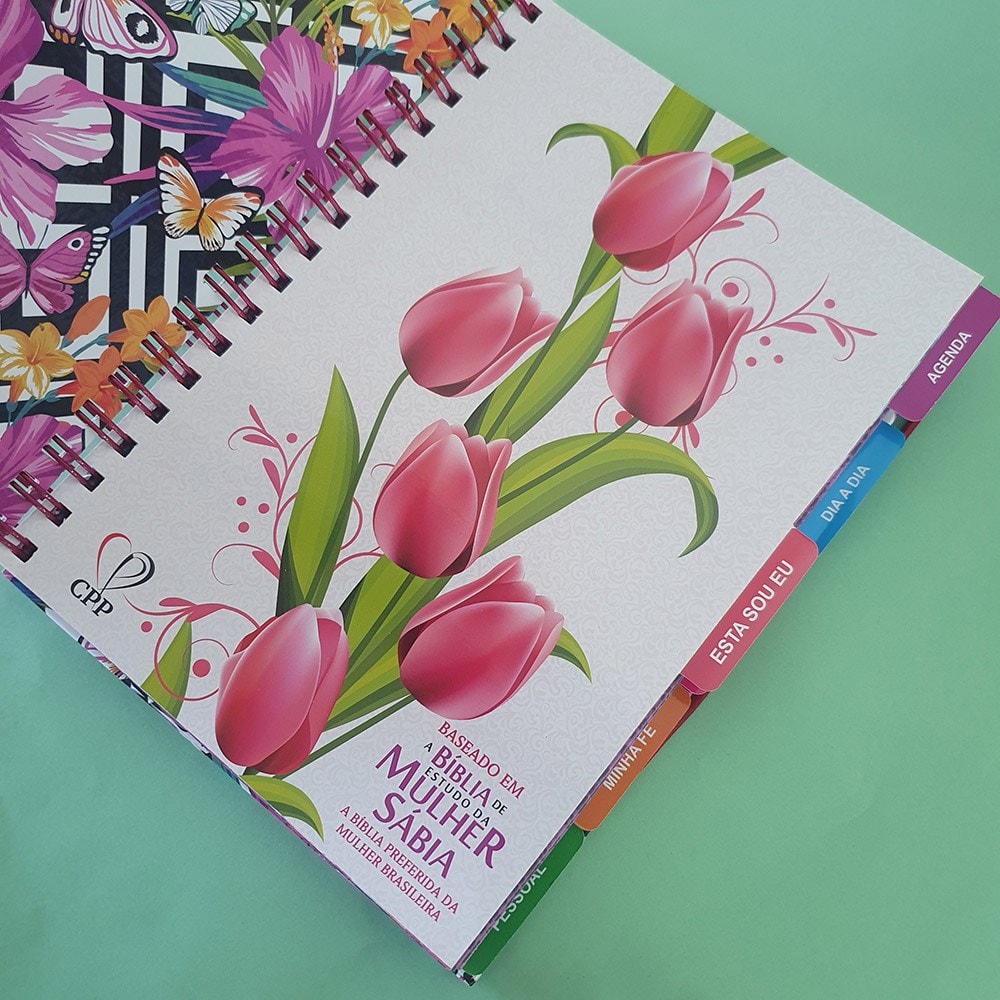 O Planner foi desenvolvido baseado na "Bíblia da Mulher Sábia", perfeito para todas as mulheres que gostam de ter uma organização mensal ou semanal. Com o design floral e feminino tem capa dura no formato em espiral.